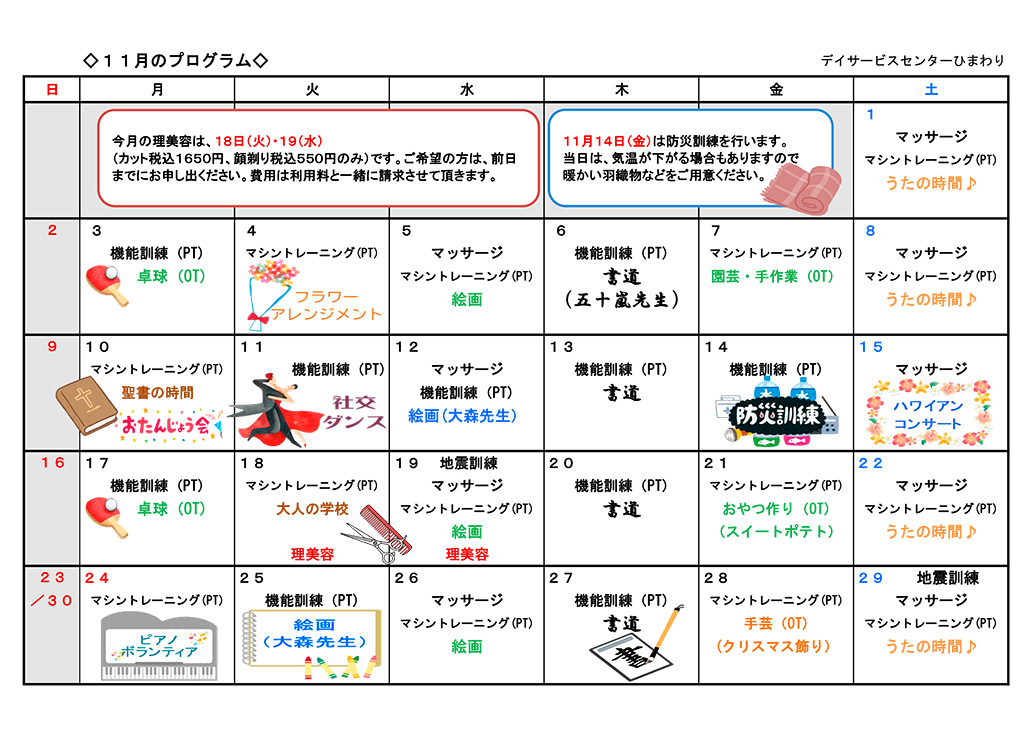 理美容11/18日(火)、11/19日(水)カット(税込)1650円、髭剃り(税込)550円です。