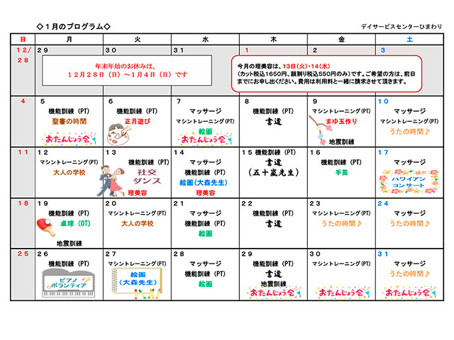 今年は、ひまわり開設から28年目に入ります。人材不足に悩みながらも、職員一同、利用者の皆さまが穏やかに健やかに、充実した時間をお過ごし頂けるよう力を合わせて取り組んで参ります。新規のご利用者ご紹介待ちしております。来年もどうぞよろしくお願いいたします!