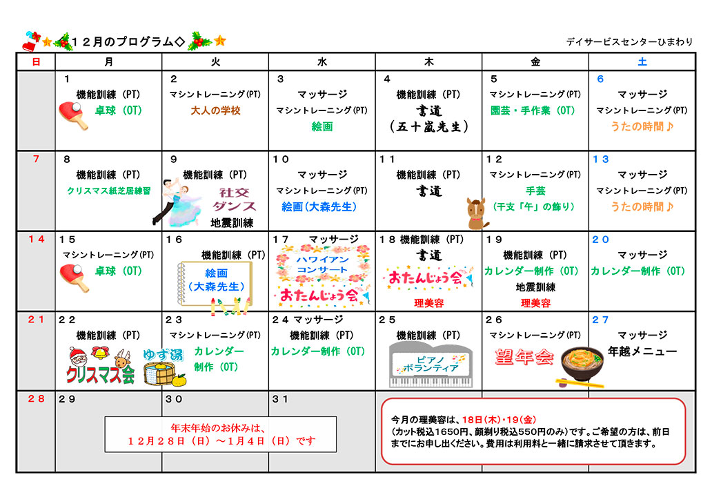 年末の行事あれこれ・・・追加のご利用もお受けいたします!