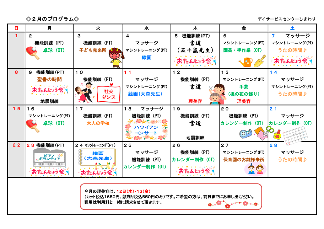 理美容2/12日(木)、2/13日(金)カット(税込)1650円、髭剃り(税込)550円です。