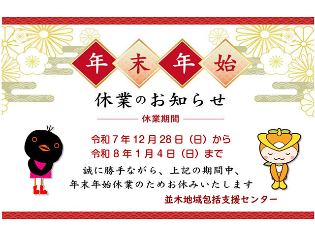 年末年始休業: 2025年12月28日(日)〜 2026年1月4日(日)までお休みとさせていただきます。ご利用者様にはこちらから直接お知らせいたします。ご迷惑をおかけし申し訳ありませんが、サービス調整等よろしくお願い致します。